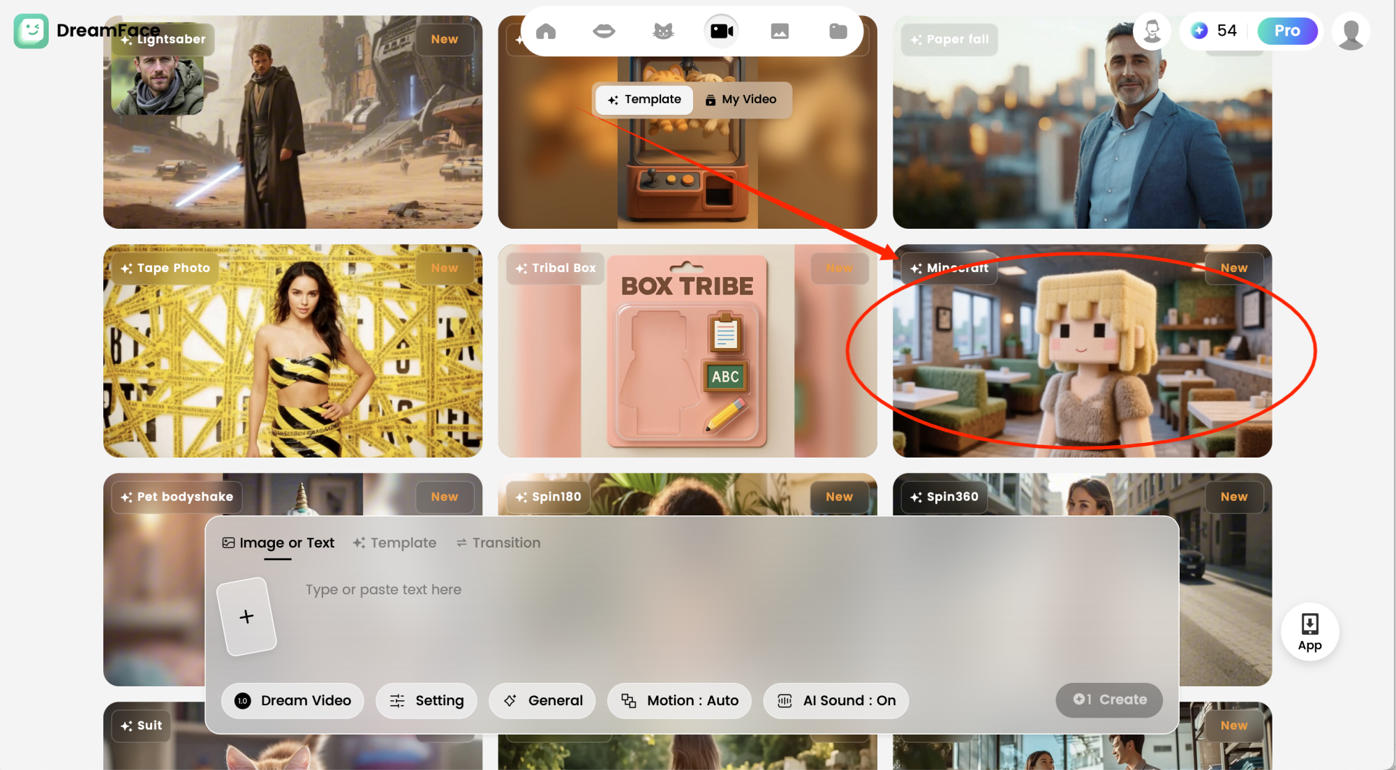 Choose the Minecraft video template that fits your style. Our templates are designed to give your photo the iconic Minecraft look, complete with blocky textures and pixelated effects.
