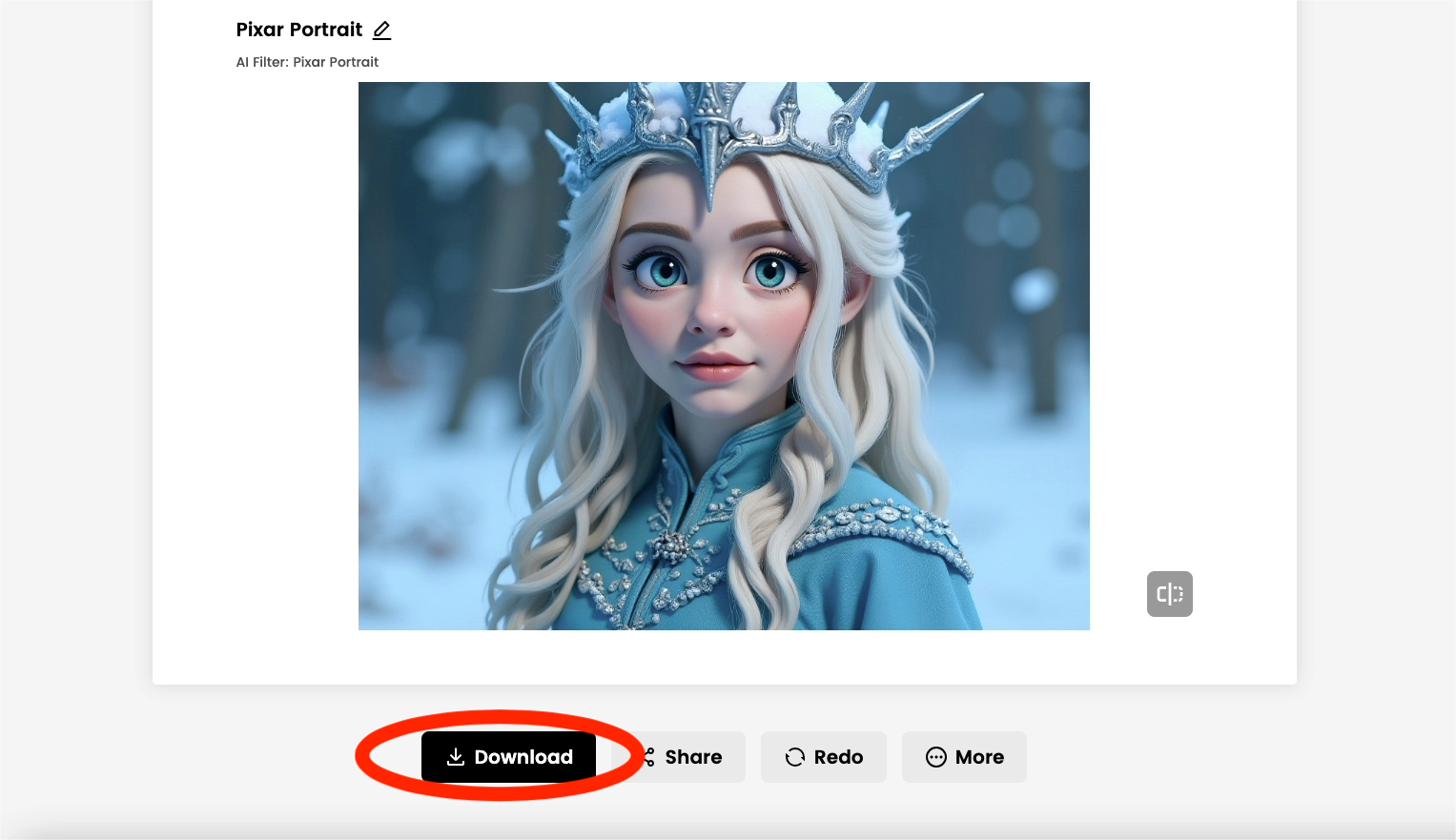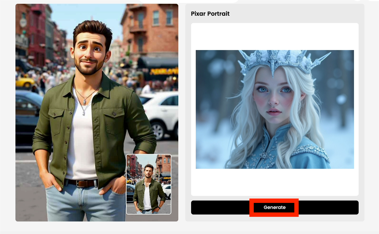 Select a clear photo of your face and upload it to the Pixar Portrait AI platform. The process is quick, simple, and totally secure.
