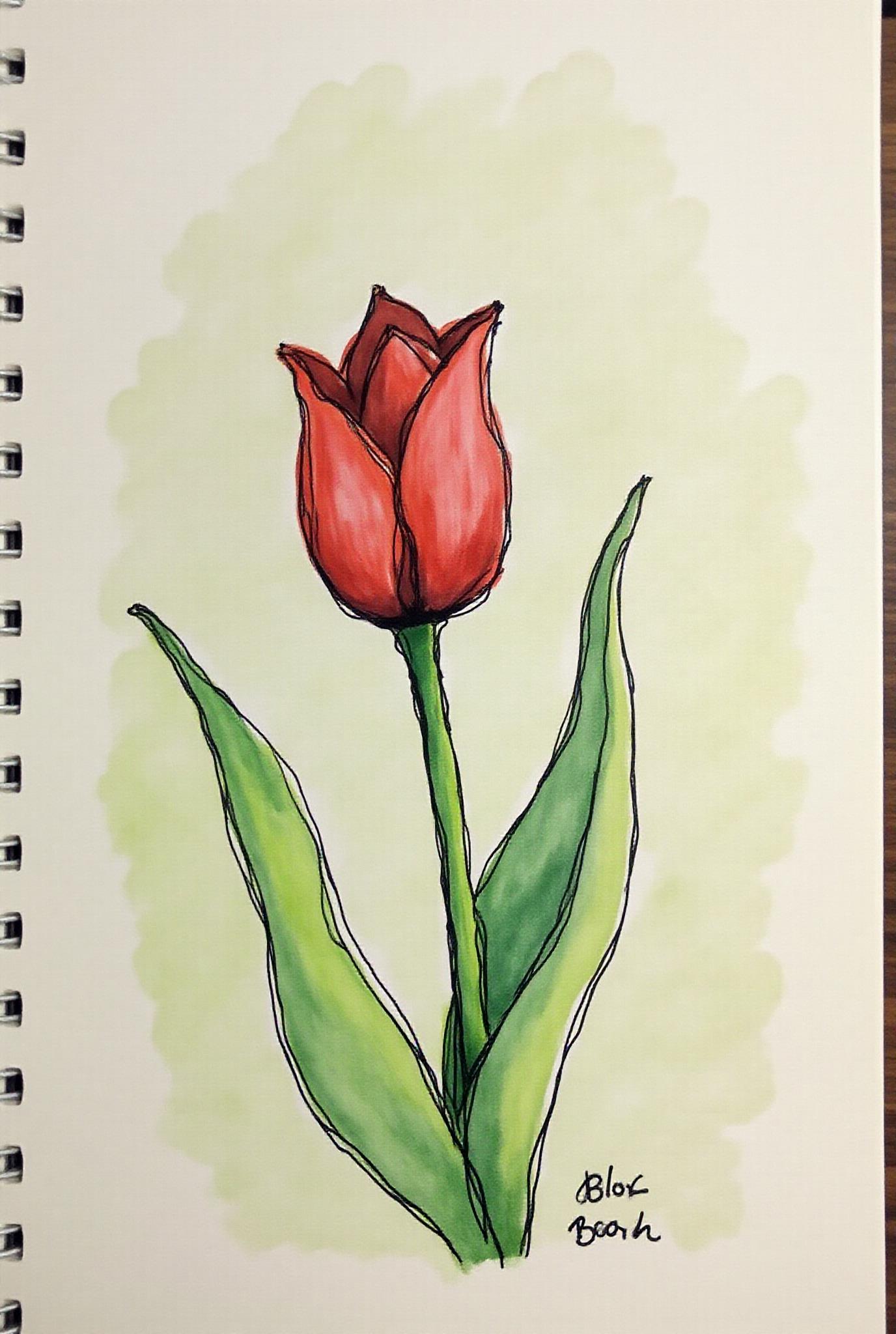AdelineHandwritten Picture Book Style, (sketch followed by rough watercolor coloring, thick handwritten outline, Watercolor smudge expression), holding a tulip in my