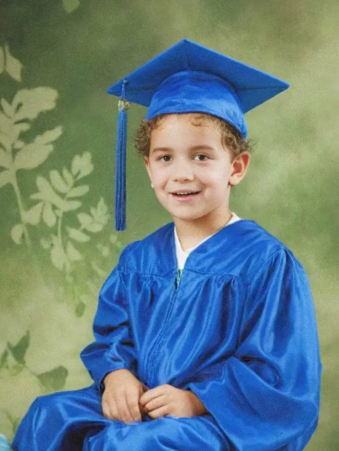 Choose Children graudation gown. The AI automatically adds the cap, tassel, gown, and soft studio background, matching proportions, lighting, and perspective.