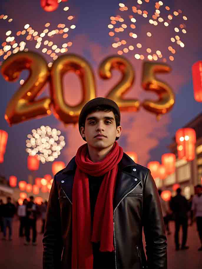 Choose Happy New Year. Click Create and wait while the AI builds the celebration scene.