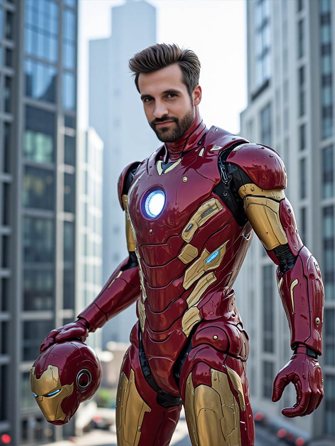 Choose Iron Man. Click Create and wait while the AI builds the marvel superhero style scene.