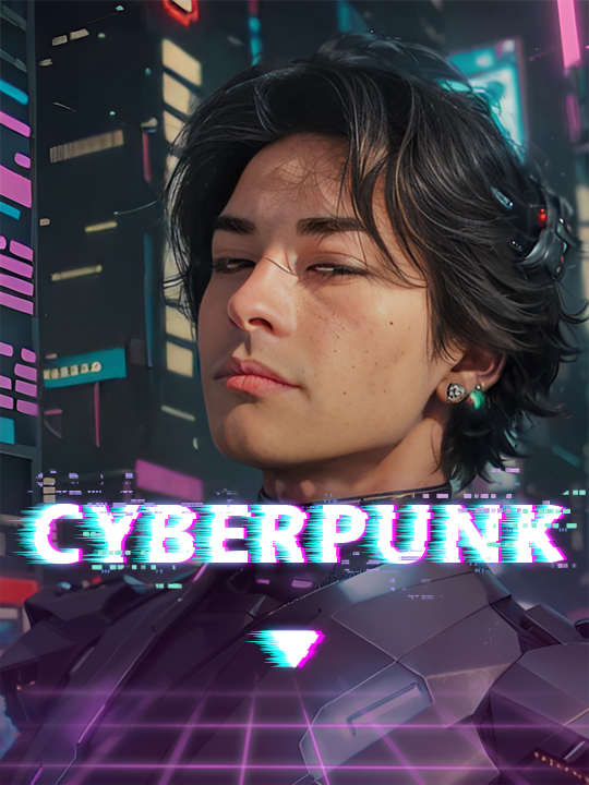 Select the Its Cyberpunk filter; AI fits techwear details and renders neon city depth while matching rim lights and reflections to your pose.