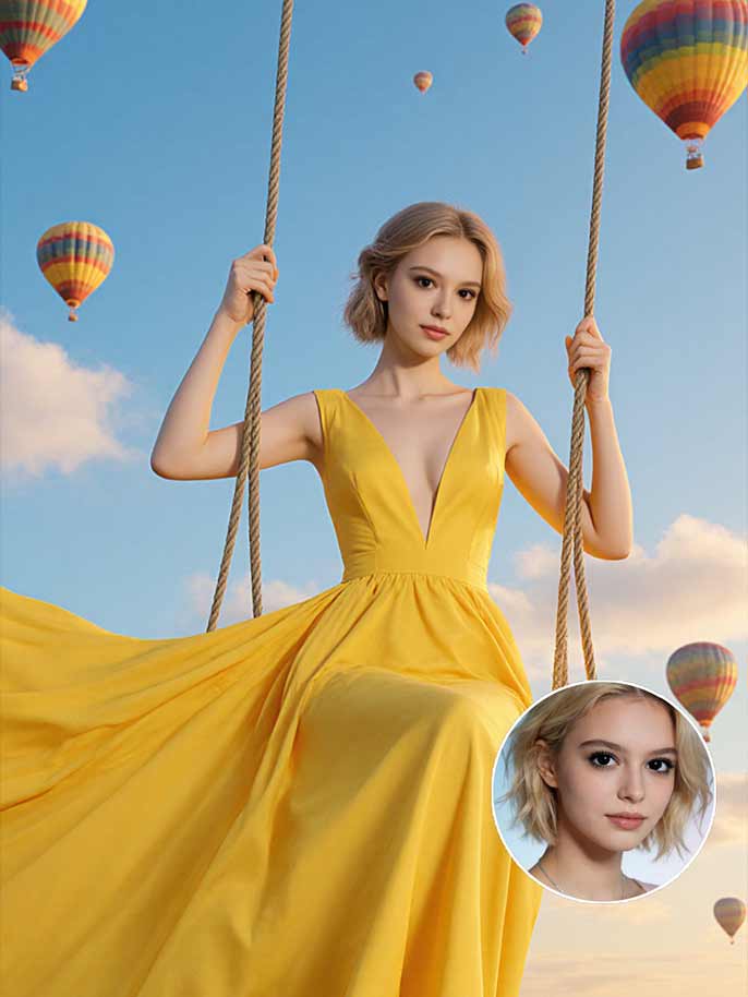 Upload a clear photo of yourself for the AI to place you naturally on a sky-high swing.