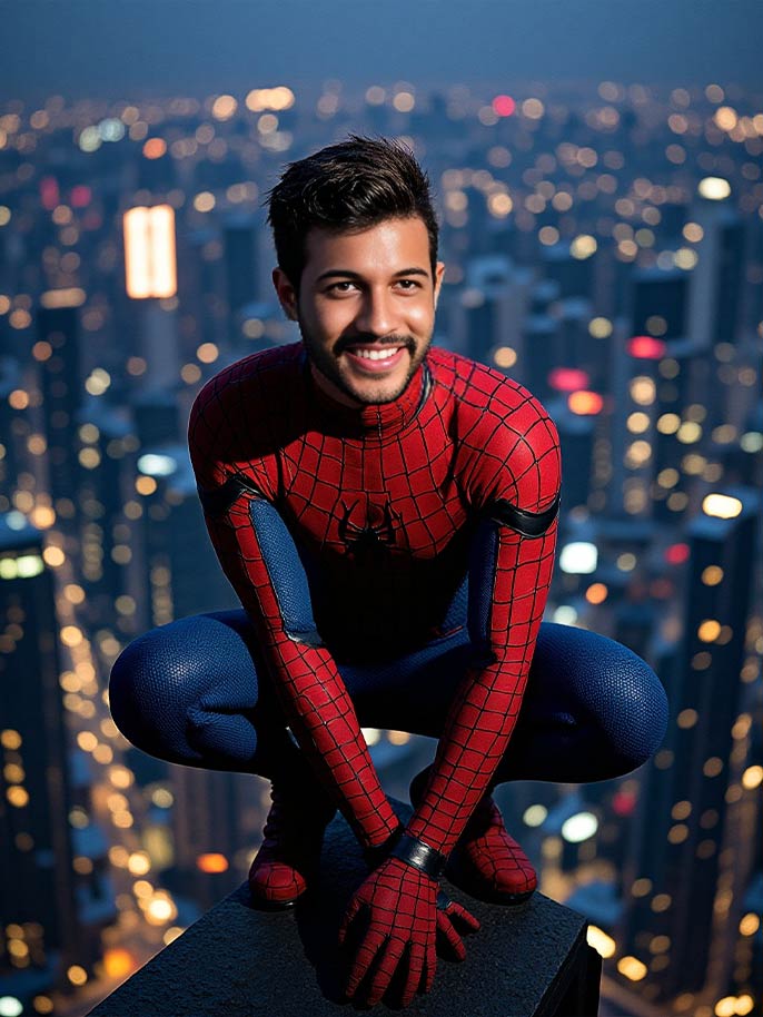 Choose Spider-Man. Click Create and wait while the AI builds the superhero style scene.