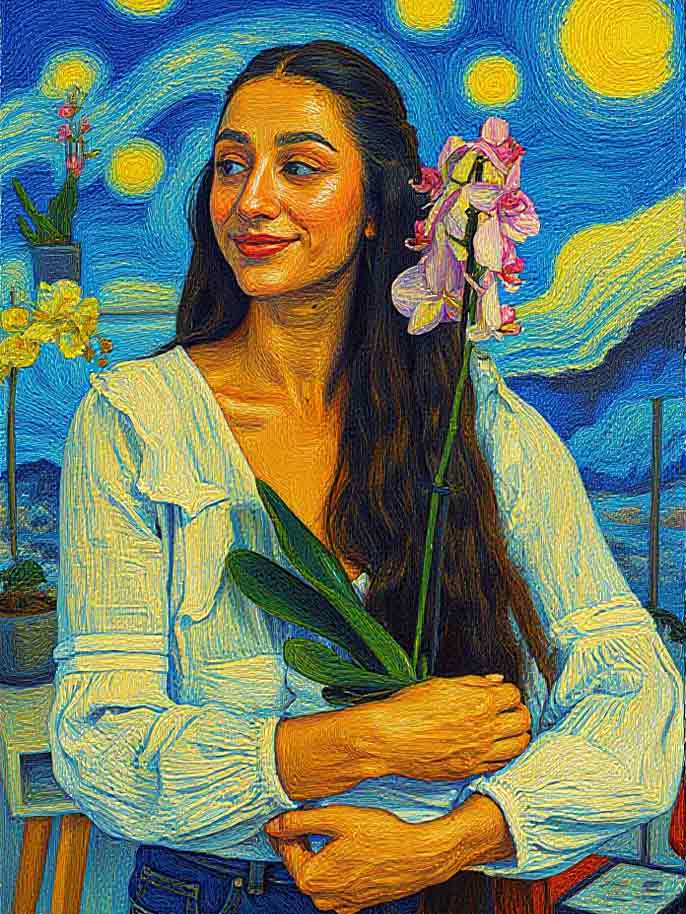 Once you upload your photo, the AI will instantly apply a stunning Starry Sky Filter. Your image will transform into a beautiful, hand-painted-like artwork with a dreamy, starry backdrop, just like a masterpiece.