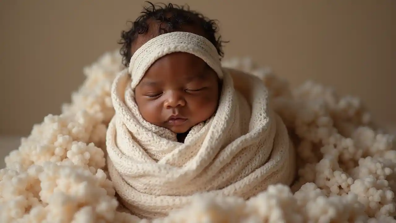 Bettyإفريقي عمره شهرين مايكل جاكسون ملفوف بملابس أطفال