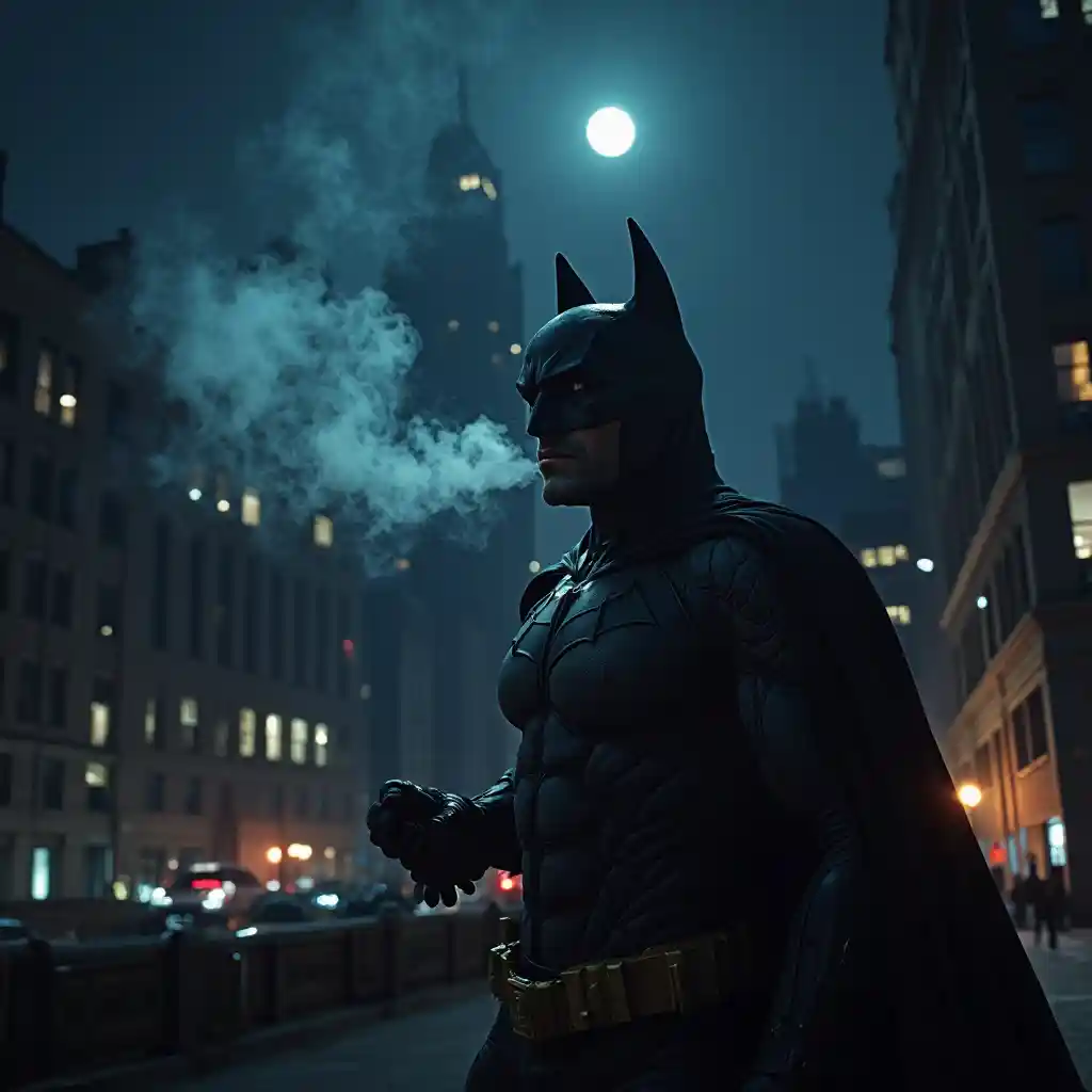 باتمان يستمتع بالدخان تحت سماء الليل
