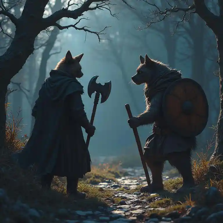 القط والكلب مقابل الحجر والفأس والدرع الخشبي