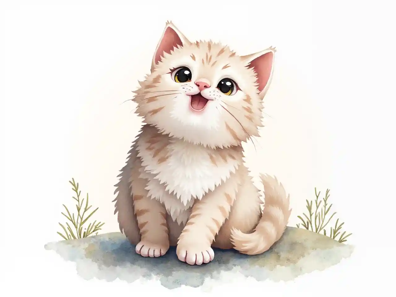 القط ، حضانة الفن المائية الخلفية البيضاء
