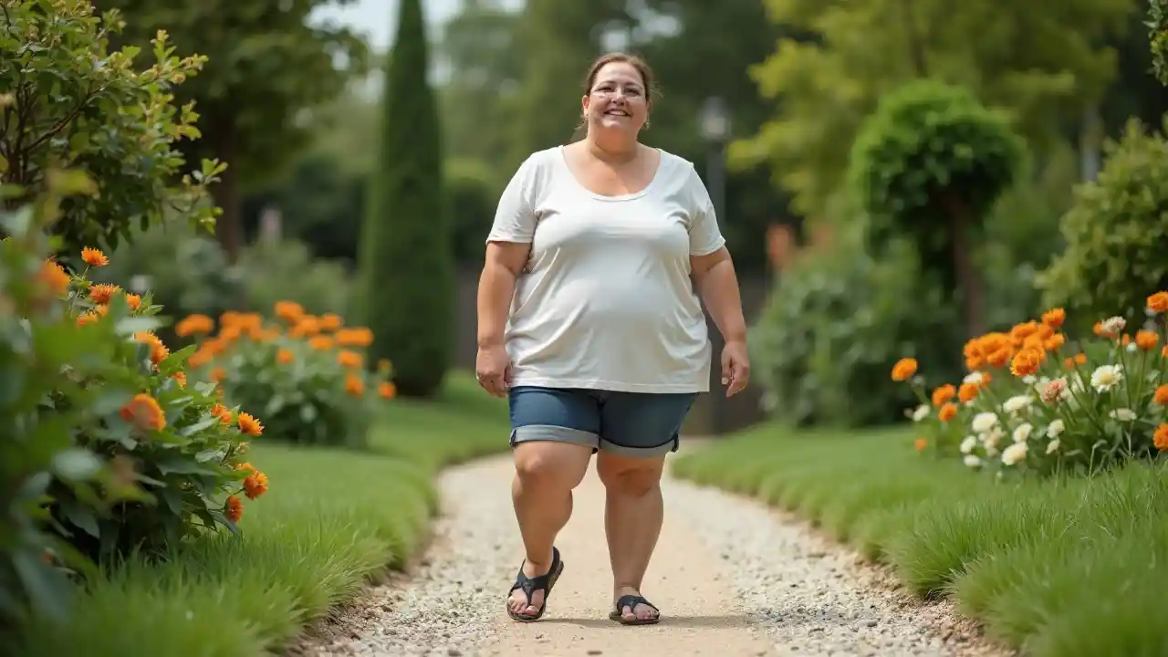 صورة لجسم كامل لامرأة أوروبية سمينة في الحديقة