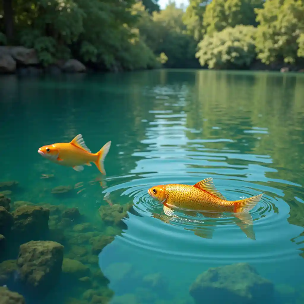 نوع من (((بحيرة جميلة جدا))) ، المياه الصافية تعكس (الأسماك المتلألئة ذات الأمواج الذهبية) التي تسبح بأناقة تحت سطح الماء. يتكون المشهد من (الأشجار والشجيرات الناضجة) التي تصطف على طول الساحل ، مما يوفر خلفية طبيعية لعرض حيوية للأسماك. سطح الماء يموج قليلا لإعطاء الأسماك نسيج واقعي ، صور واقعية ، دقة 4K ، الإضاءة الحجمية ، أضواء جميلة ، ألوان زاهية ، (الخلفية الطبيعية) مع التركيز على الأشجار الناضجة والشجيرات ، والسباحة الأنيقة للأسماك.