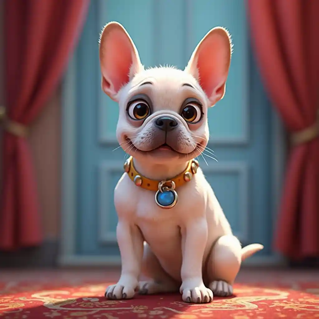 ملصق فيلم Disney pixar dylan يظهر كلب بلدغ فرنسي أبيض