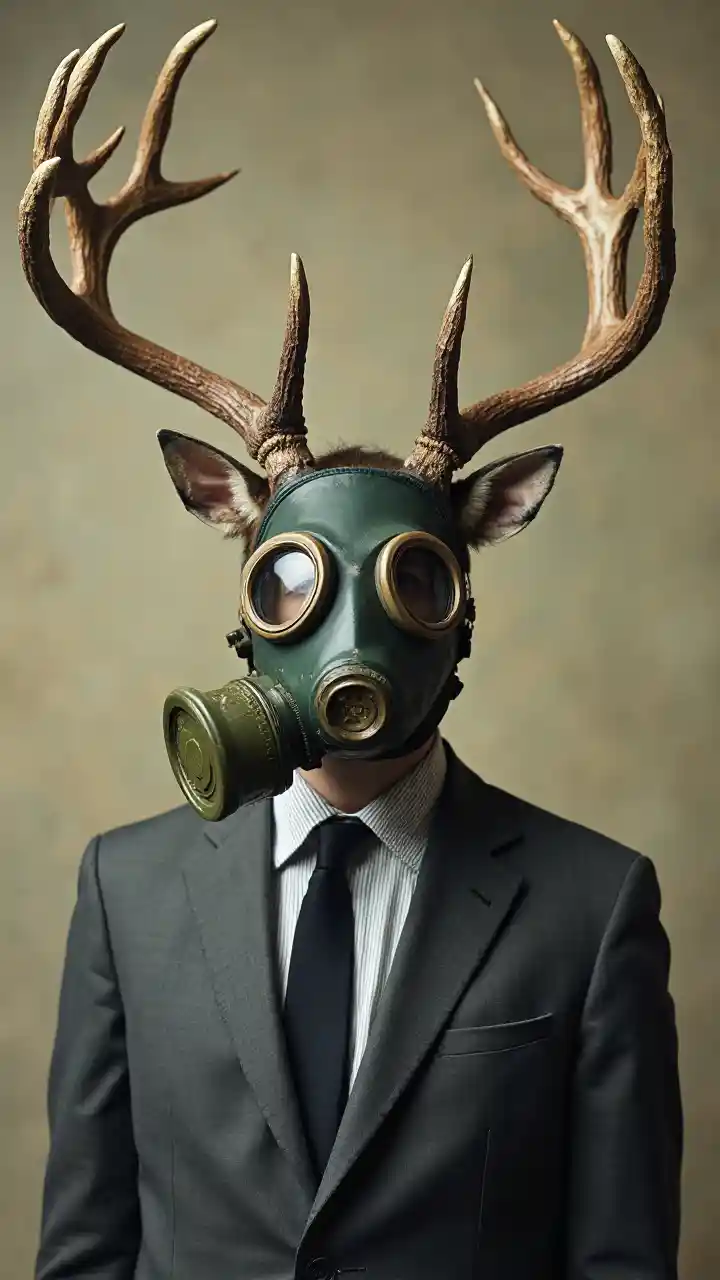 من يرتدي البدلة يرتدي قناع الغاز وقرون الستاغ