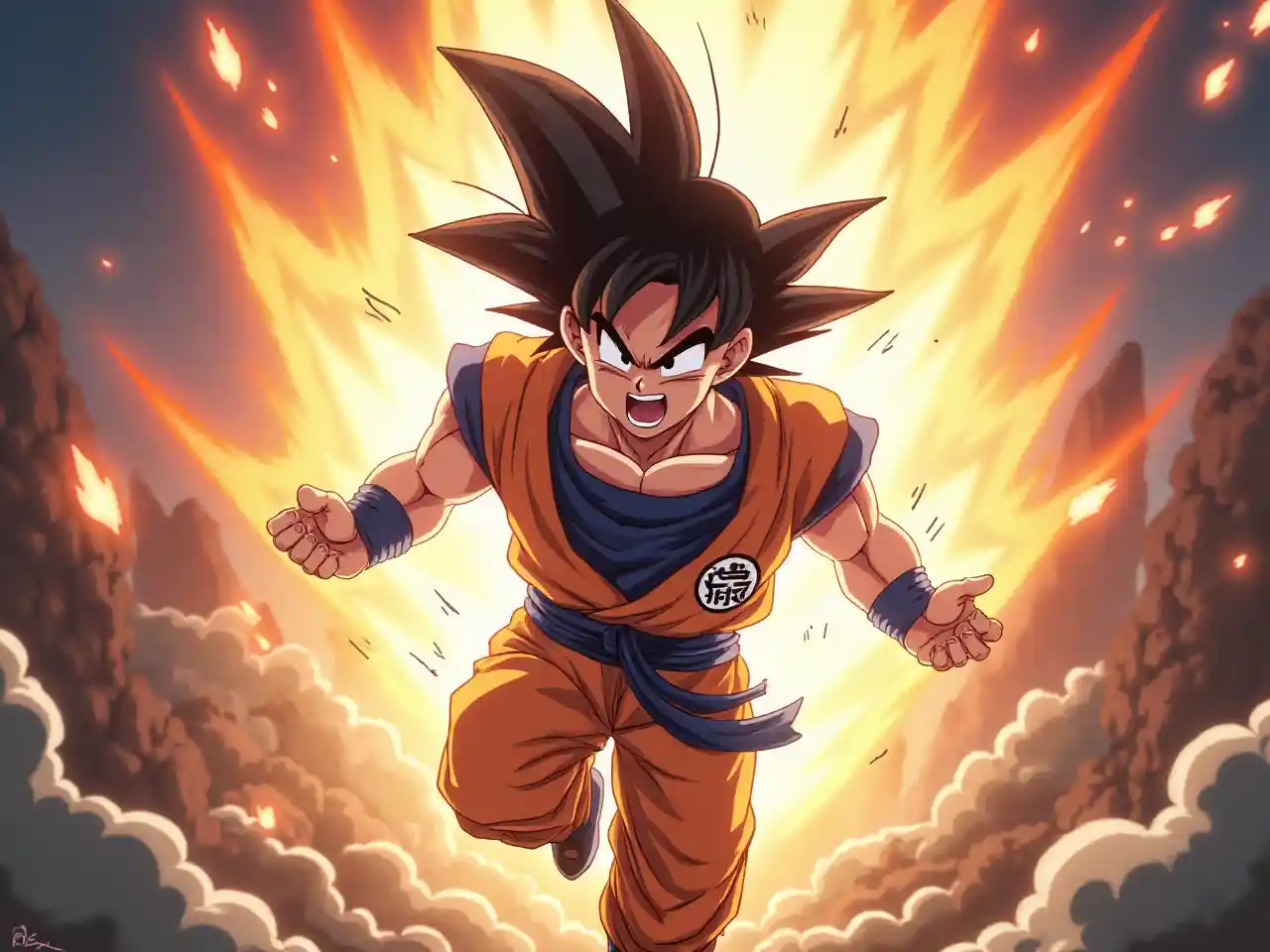 غوكو يعيد شحن نفسه ، هالته تشع طاقة قوية.