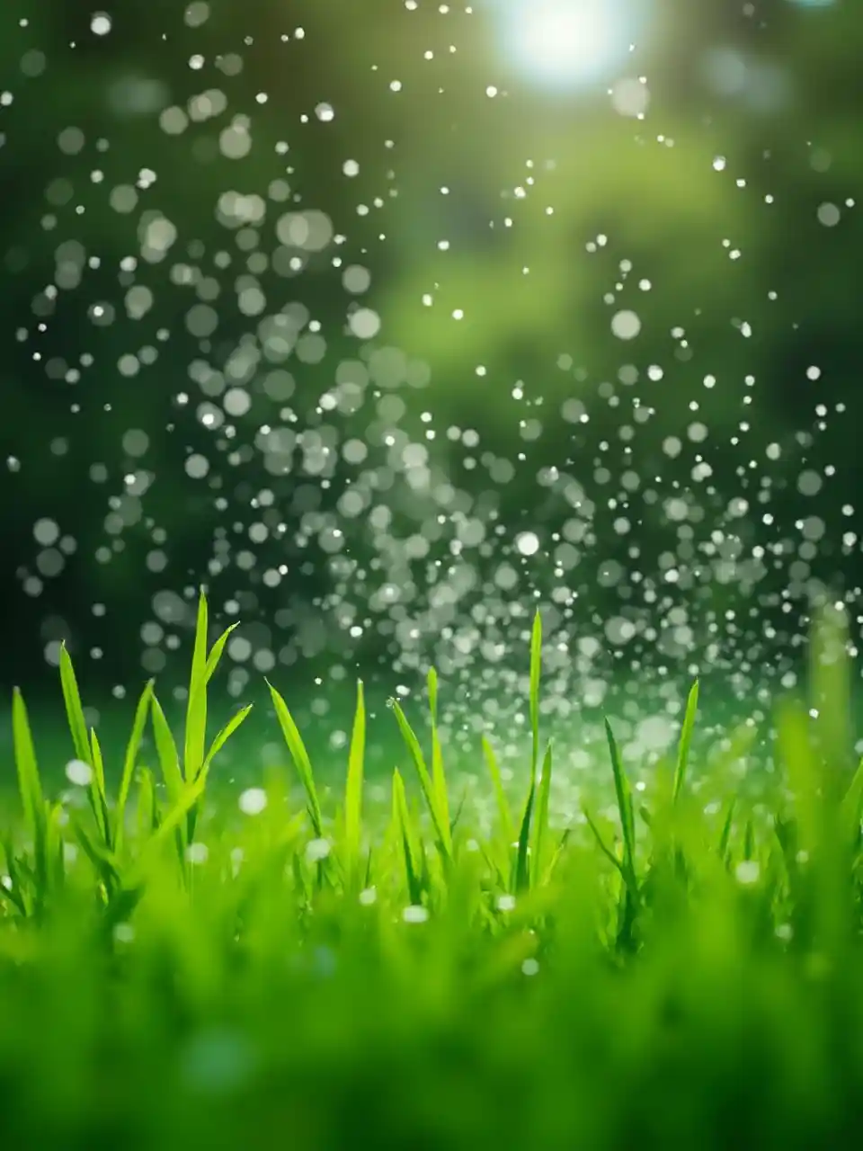 تنقيط رذاذ الماء في حديقة العشب الأخضر النابض بالحياة