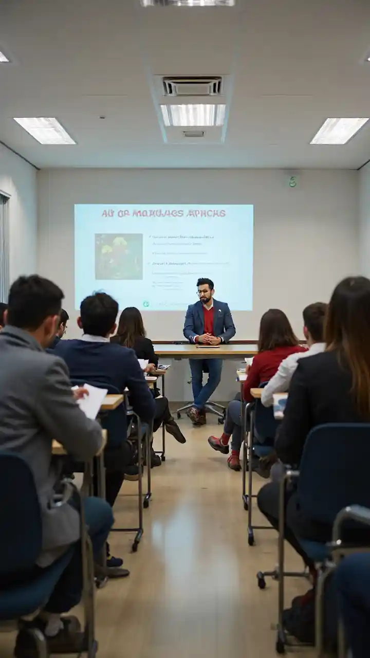 يشتمل برنامج IELTS في مدرسة Safir للغات في طهران على فصل دراسي حديث يضم المعلمين والطلاب على حد سواء.