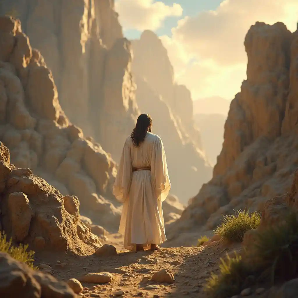 ANNAقيامة يسوع المسيح ، يقف أمام قبره ، يرتدي اللون الأبيض في جميع أنحاء الجسم ، ويصور قصص الكتاب المقدس ، صورة جميلة ، واقعية ، مع زوايا واسعة من حوله.