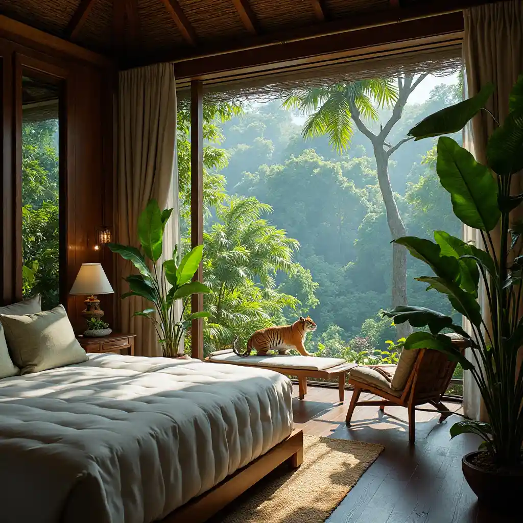 فندق استوائي فاخر مع إطلالة على الغابة والنمر