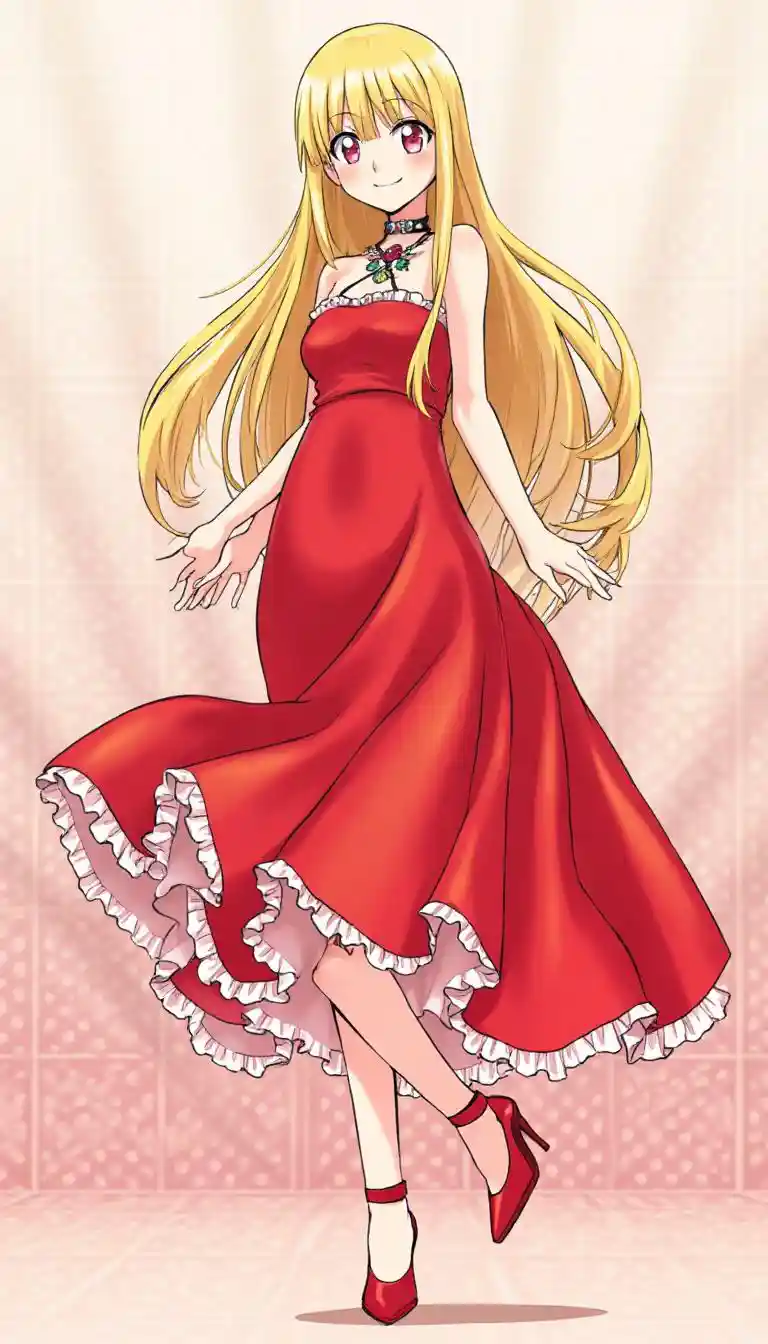 KJOMARIN ، غال ، الجيل العاشر ، فستان أحمر ، كعب عال ، خلفية ، شعر طويل ، أشقر ، عيون وردية ، ثقب ، نحيف ، ، صدر متوسط ، حواجب مهيأة ، ابتسامة ، اليابان ، بناء رو
