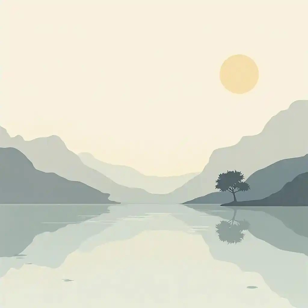Tabii!丨şte الحد الأدنى bir ilüstrasyon için kullanabileceğiniz bir promptönerisi: "يوضح الأسلوب البسيط مناظر طبيعية هادئة ، تتميز ببحيرات هادئة تعكس السماء ، وشواطئ فريدة من نوعها ، وجبال كثيفة في المسافة. يجب أن تكون لوحة الباستيل ، مع ظلال الباستيل الأزرق والرمادي والبيج. يجب أن ينتبه التصميم إلى البساطة والخطوط البسيطة والمساحة السلبية الكافية لخلق جو هادئ