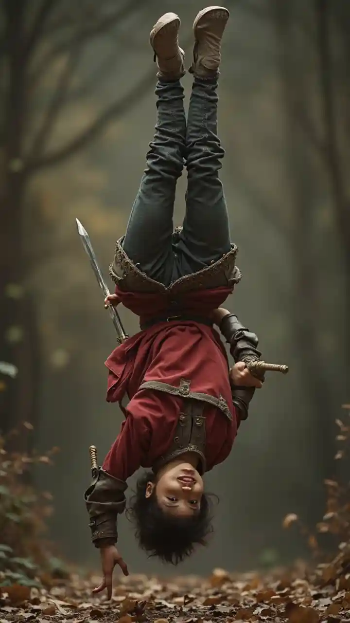 يقوم رجل الجمال في العصور الوسطى بحركات بهلوانية بالسيف ، ويقف رأسًا على عقب ، ويظهر فخذين ورقصات قوية وأنيقة - تتناغم الحركات مع مهاراته