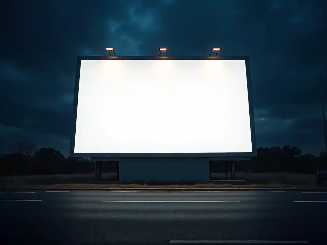 لوحات إعلانية بيضاء عملاقة أمام ظلام الليل