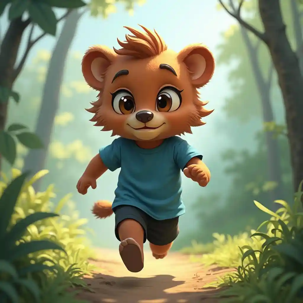 الأنواع: دب صغير على غرار بيكسار 3D لطيف المظهر: كبير ، بدة رقيق ، عيون معبرة تعبيرات: قليلا من الفرح أو الخلط الملابس: تي شيرت أزرق وشورت أسود Pose/Action: سماء خفيفة من Serry وأجواء هادئة وهادئة مع ظلال لطيفة استخدم كل هذه النقاط لكتابة تلميح أنه يعمل بمفرده. الغابة