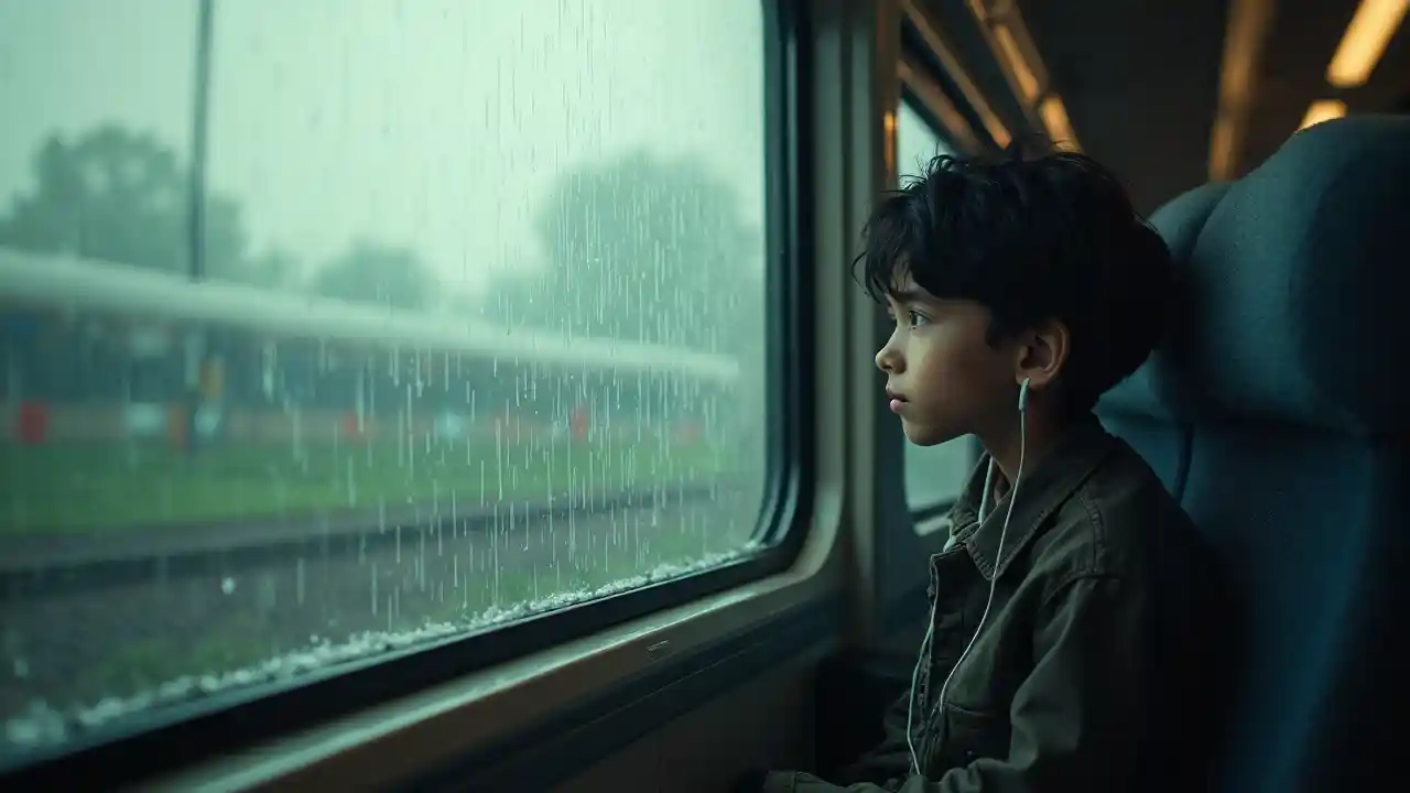 كان الصبي جالساً بجانب نافذة القطار ، وعيناه كانتا ثابتتين على ضبابية قطرات المطر التي لا نهاية لها والتي تجتازها على الزجاج. في الخارج ، كان العالم لونًا مائيًا ناعمًا باللون الرمادي والأخضر ، وهو إيقاع هادئ يتردد على صوت المطر الذي كان يرفرف باستمرار على السطح. كان القطار يهتز برفق ، وكانت العجلات تغني ألحانًا منومة على القضبان ، لكن مركز ثقله كان في مكان آخر. كانت سماعات الرأس الخاصة به مريحة ، ويبدو أن الأغاني التي تم تشغيلها في أذنه كانت متزامنة تمامًا مع الحالة المزاجية - بطيئة ، وكئيبة ، ولكن واعدة. يجد الصبي راحة غريبة في صوته عندما تستعر العواصف في الخارج ، وتطفو أفكاره بين الإيقاعات ، وبين لحظات المنزل والبعد ، والرحلات التي تتكشف أمامه. المطر ، والموسيقى ، والقطار - كل شيء يصبح واحدا. لم تتم كتابة فصل عابر من القصة بعد ، وكل ملاحظة في قائمة التشغيل الخاصة به تحثه على المضي قدمًا نحو المجهول.