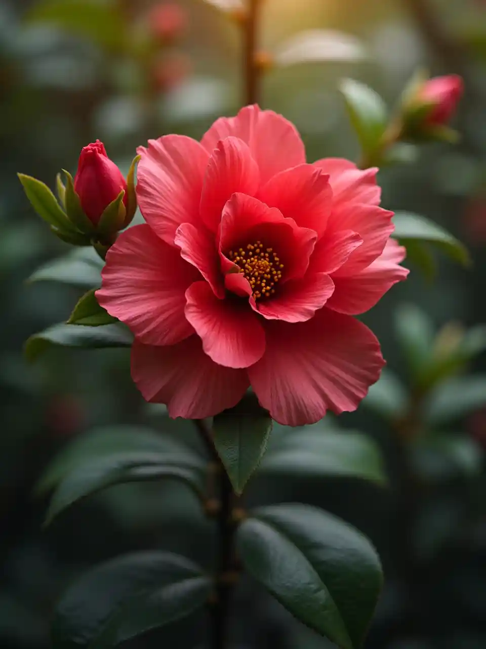 أزهار كاميليا اليابانية الحمراء تتفتح