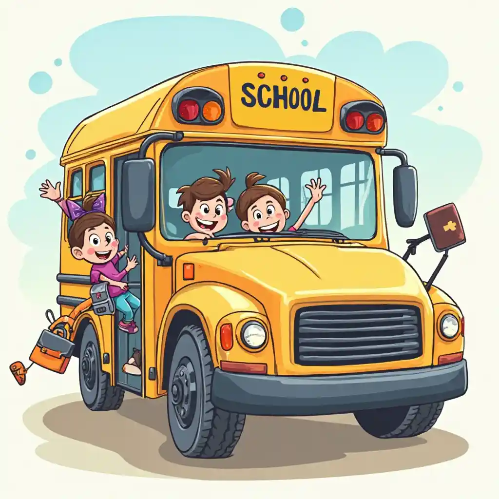 WilliamVector a School Bus Happy Student أحضر حقيبة إلى المدرسة ، شعار التميمة ، الألوان الزاهية ، شعار Vector ، صورة Vector