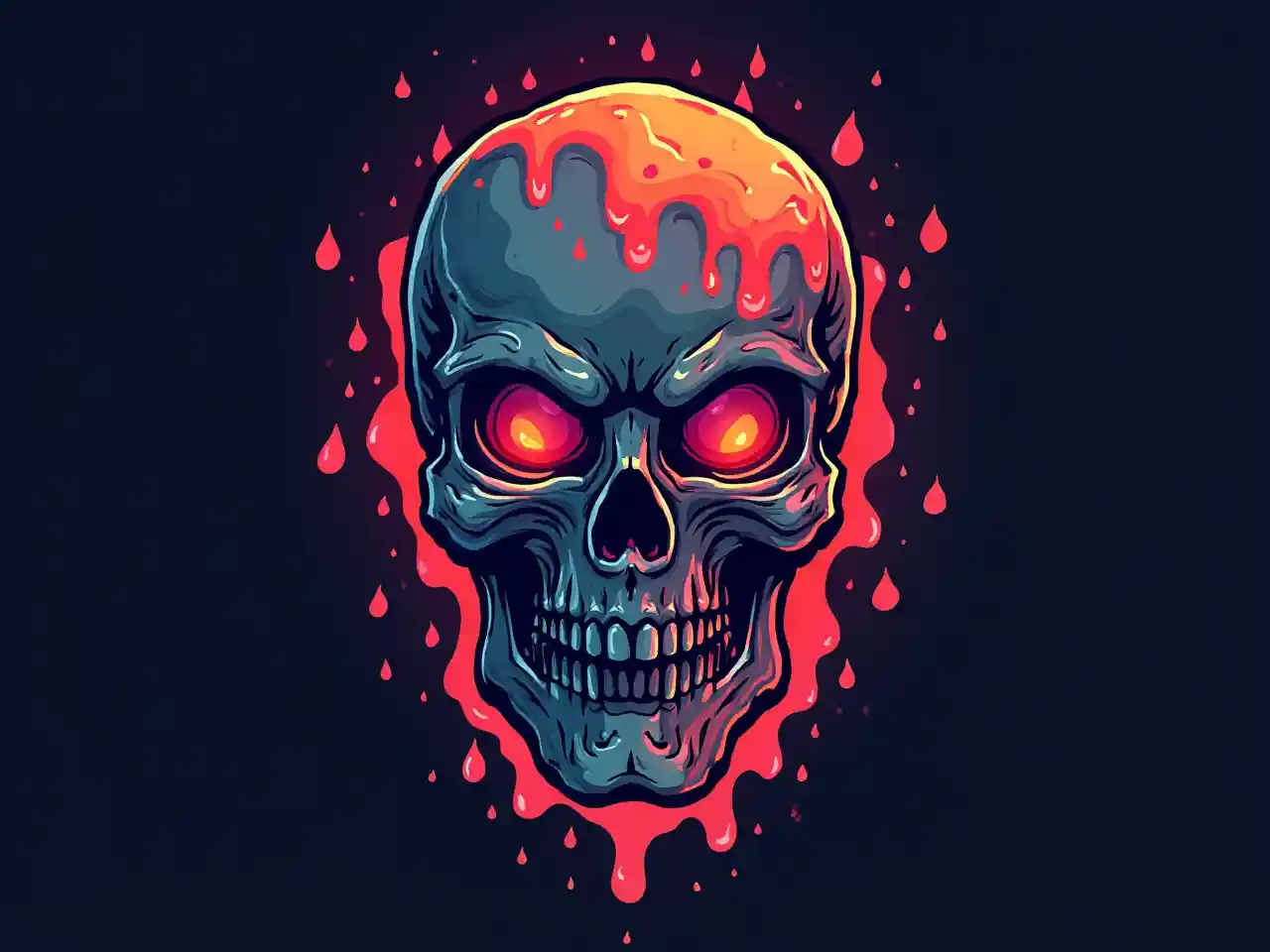 SebastianVector تذوب الجمجمة الموسيقى شعار التميمة ، الألوان الزاهية ، شعار لعبة الجمجمة ، صورة متجهة