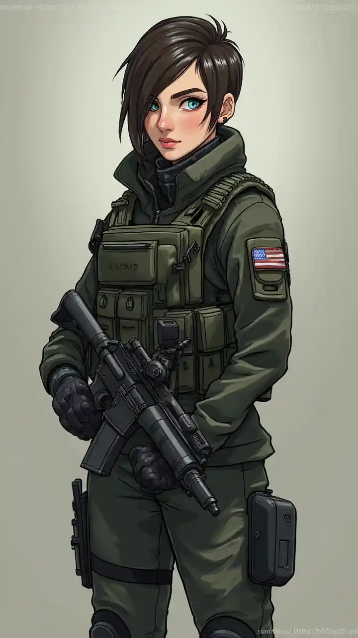 الاسم: تويستد (الاسم الحقيقي: إيلي ميلر) الأسلوب/الموضوع: العمليات العسكرية كان إيلي جنديًا مدربًا جيدًا يمزج بين الدقة التكتيكية والحافة الصعبة. معداتها العسكرية هي الأكثر تقدما ومصممة خصيصا لكل من القتال القريب والاشتباك بعيد المدى. المظهر: الشعر: قصير ، بني غامق ، مع تظليل دقيق على جانب واحد النظرات: أزرق جليدي لاذع ، قوة مراقبة حادة بناء: الرياضة والعجاف ، الأمثل لخفة الحركة والقدرة على التحمل ملامح الوجه: ندبة غامضة على عظم الخد الأيمن ، مما يوحي بالمعارك الماضية تعبيرات: تركيز هادئ في كثير من الأحيان ، ولكن مع قوة كامنة Gear & Weapons: السلاح الأساسي: بندقية هجومية مخصصة مع كاتم للصوت ، ومشهد ثلاثي الأبعاد ، ومخزن ممتد الأسلحة المساعدة: البنادق التكتيكية للقتال من مسافة قريبة بندقية قنص: خفيفة الوزن ، بندقية قنص من نوع بندقية مصممة لإطلاق النار دقيقة لمسافات طويلة سترة تكتيكية: معيارية مع ألواح مدرعة معززة مع أكياس ذخيرة إضافية ومستلزمات طبية إضافات: قفازات قتالية ، وسادات للركبة ، وسماعات اتصال مع قنوات مشفرة سمات الشخصية: الهدوء والاستراتيجية تحت نيران المدفعية: إيلي جيدة في الحفاظ على رباطة جأشها أثناء تبادل إطلاق النار المكثف ، وحساب الحركات بدقة. مشكلة الغضب: على الرغم من انضباطها ، إلا أنها لا تزال تكافح مع نوبات الغضب التي أثارتها الصدمات أو الظلم في الماضي ، مما يجعلها غير متوقعة في بعض الأحيان. الصدمة: تطاردها أحداث من مهامها السابقة ، والتي تغذي حالتها العاطفية المعقدة. ليسبيان: الكشف عن هويتها ، مما أثر على روابطها الوثيقة مع زملائها في الفريق وقوس قصتها الشخصية. اضطراب الشخصية الحدية (BPD): إظهار الشدة العاطفية ، والخوف من التخلي عنها ، والصراع مع العلاقات ، وإضافة طبقات إلى عمق شخصيتها وتفاعل المهام.