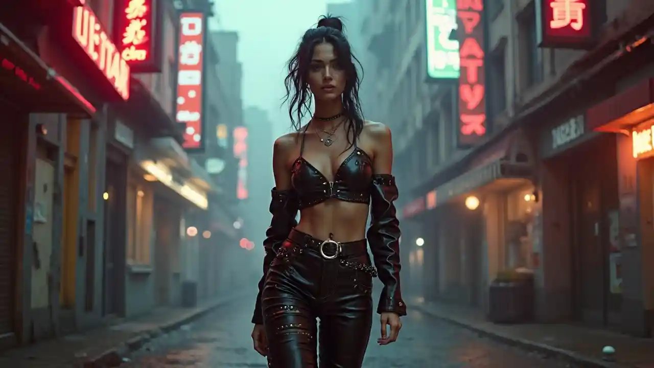 أنيقة ديستوبيا: امرأة شرق أوسطية في ملابس جلدية