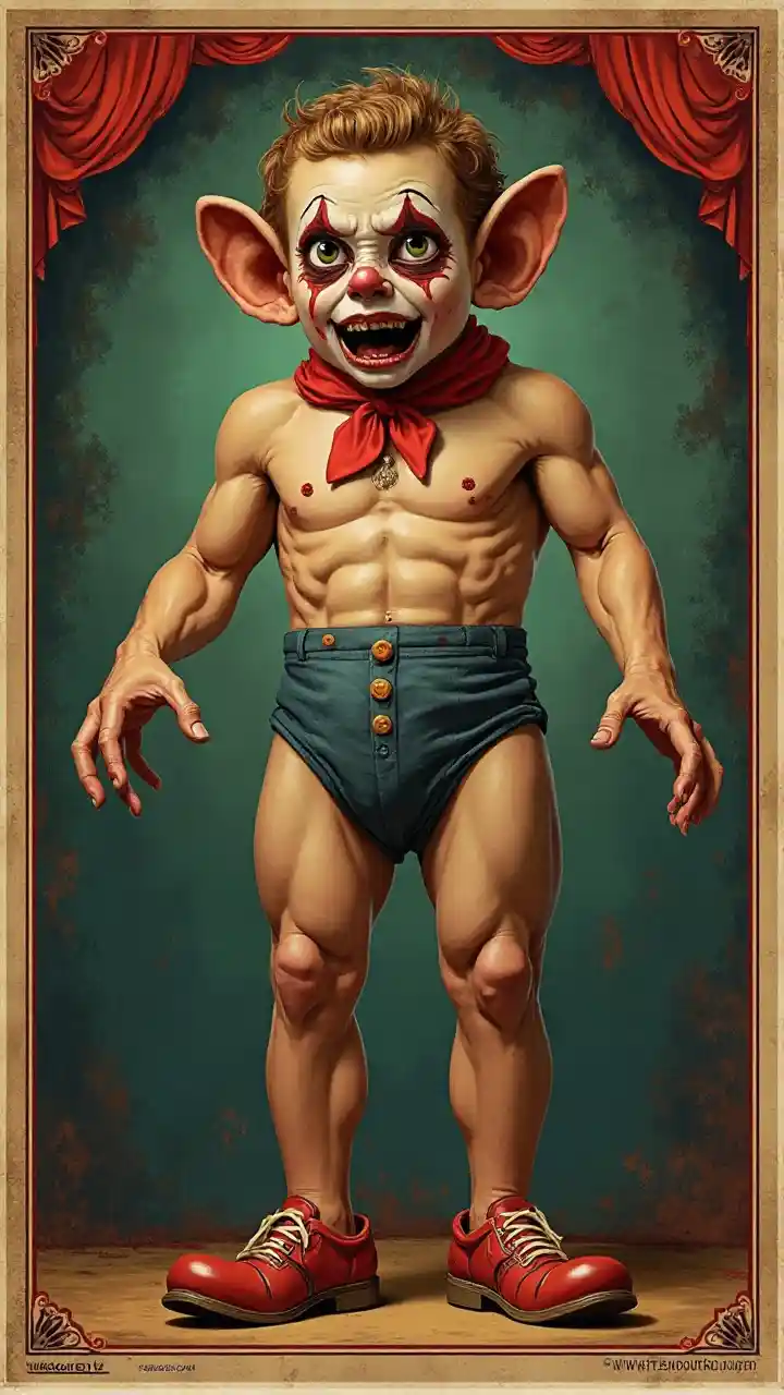 Vintage سيركوس Sideshow ملصق الرعب القزم