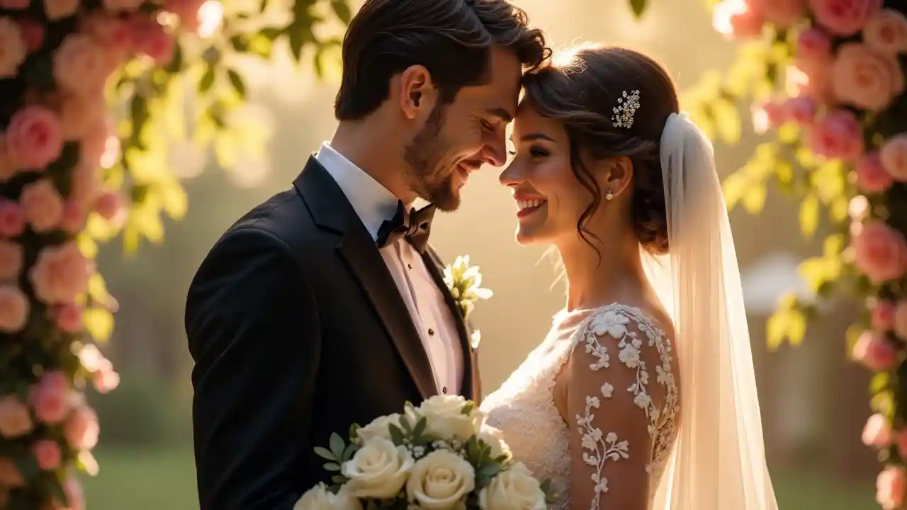 عند الاستحمام في الأضواء الناعمة ، يقف زوج من العروس والعريس معًا بإحكام ، ويشع هالة من الحب والألفة. وارتدت العروس فستان أبيض أنيق ، بتفاصيل متداخلة من الدانتيل ، وحملت باقة من الورود البيضاء المزخرفة باللون الأخضر ، وابتسامة رقيقة توحي بفرحتها. ارتدى العريس بدلة رسمية حادة باللون الأسود ، وربطت ربطة العنق ، وحدق بها بحنان ، ووضع يده على كتفها برفق لتوفير الراحة. الخلفية ، ضبابية خفية ، وتتميز بألوان نابضة بالحياة ، توحي باحتفالات الزفاف ، ما يعزز الأجواء الرومانسية في هذه اللحظة العزيزة. تعكس تعبيراتهم ارتباطًا عاطفيًا عميقًا يستحوذ على جوهر اتحادهم.