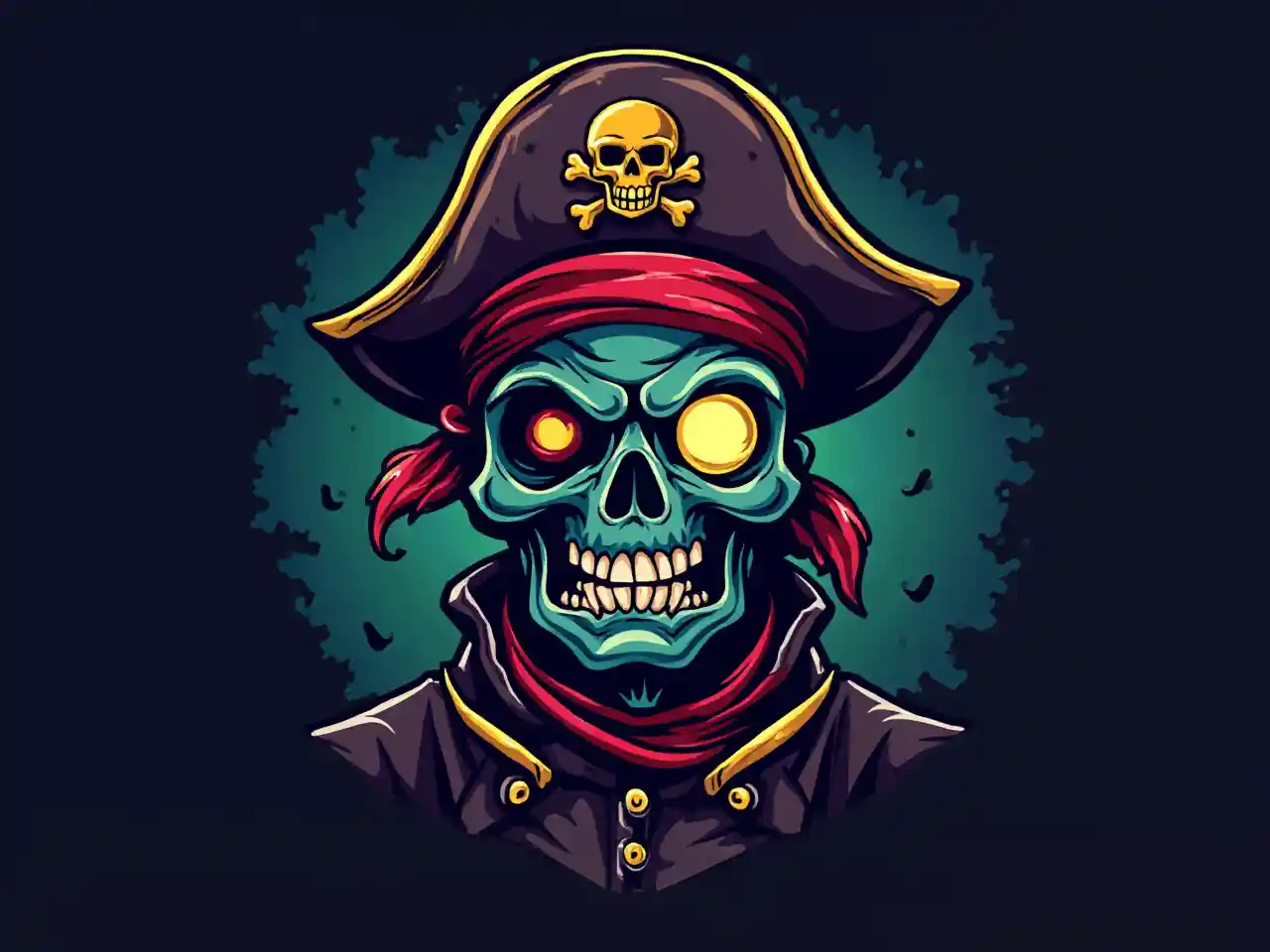 RobinZombie جمجمة Captain Pirates علامة التميمة ، ألعاب الفيديو ، الألوان الزاهية ، شعار اللعبة ، صورة متجهة