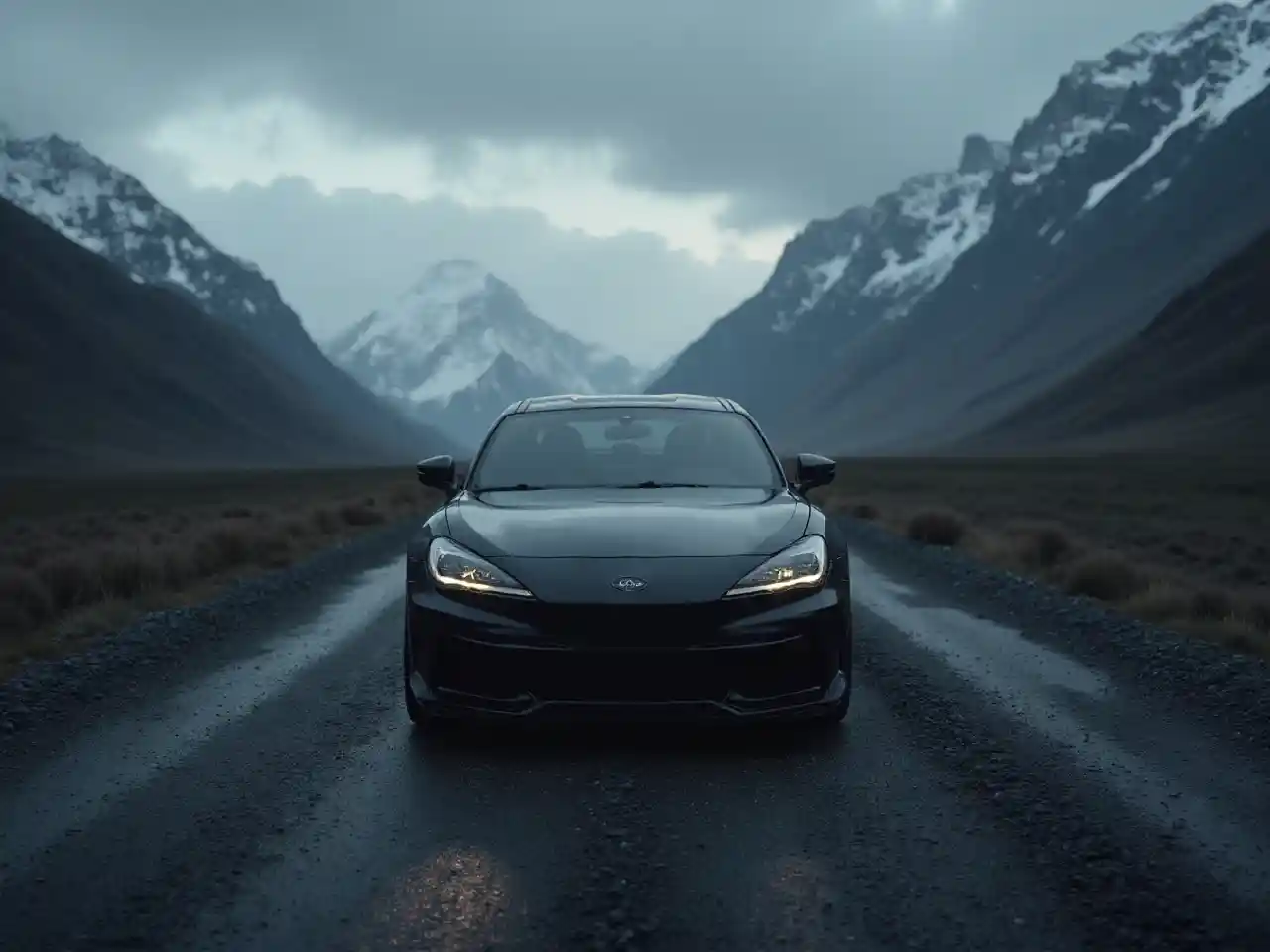 মাউন্টেন ডার্ক মোড সহ কালো গাড়ি