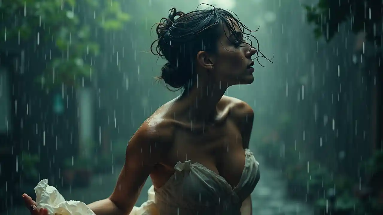 একটি চমত্কার মহিলা ঝরনার মধ্যে মার্জিতভাবে ঘুরছে, তার ছায়া ঝরনার দ্বারা সুন্দরভাবে রূপান্তরিত হয়েছে। তার মুখের উপর ঝলমলে ঝলমলে ঝলমলে ঝলমলে ঝলমলে ঝলমলে ঝলমলে ঝলমলে ঝলমলে ঝলমলে ঝলমলে ঝলমলে ঝলমলে ঝলমলে ঝলমলে ঝলমলে ঝলমলে ঝলমলে ঝলমলে ঝলমলে ঝ দৃশ্যটি মুহূর্তের কাঁচা সৌন্দর্য এবং স্বাধীনতাকে ক্যাপচার করে, 32 কে ইউএইচ স্পষ্টতায় আলোকিত হয় এবং জটিল বিবরণ দিয়ে সমৃদ্ধ হয়। তার পোশাক তার ফর্মের সাথে লেগে থাকে, তার গতিতে একটি ইথেরিয়াল গুণ যোগ করে, যখন সে ঝড়ের ধ্রাবণীয় নাচে নিজেকে হারিয়ে ফেলে।