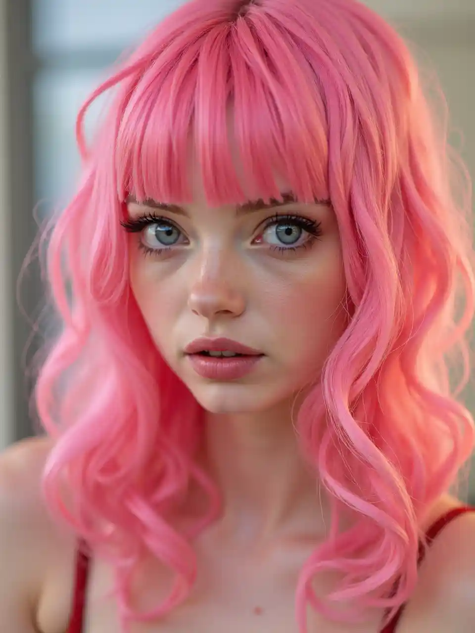 গোলাপী চুল এবং জেলি স্টাইলের এক অনন্য নারী