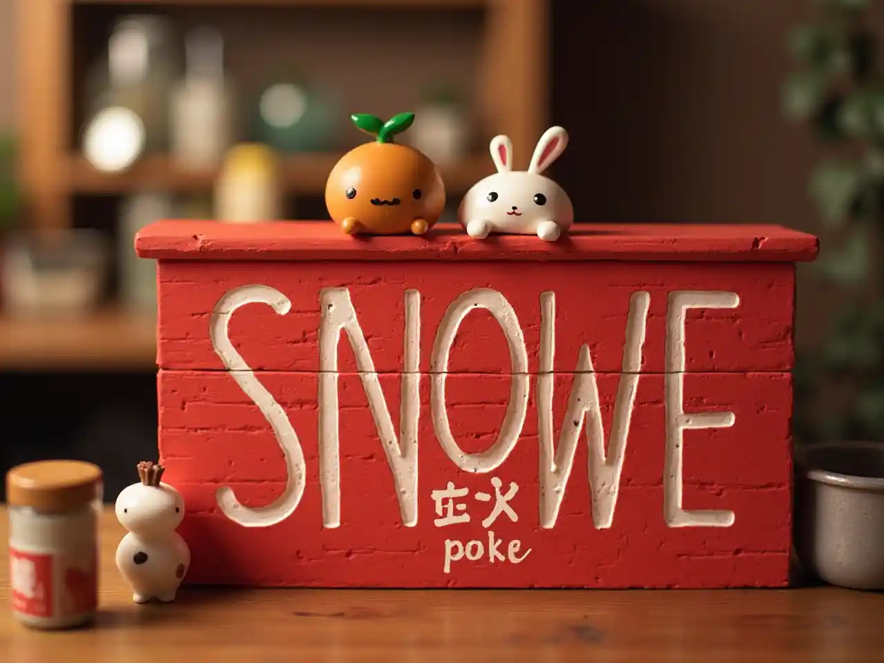 A vibrant red wooden sign features the word "SNOWIE" prominently in white, with the Chinese characters for "snow" and "poke" artistically integrated below. Perched atop the sign are two charming figurines: a small round character with a green leaf on its head, alongside a tiny white bunny with elongated ears, both rendered in a simplistic, cute style. The setting evokes a warm, inviting atmosphere, complemented by soft lighting that illuminates the textures of the wood and paint. The overall composition suggests a cozy, whimsical charm, possibly indicating a playful brand or café with a focus on a lighthearted theme. ✨ Watch cute designs come to life! 🎨 From paper to skin - the magic of tattooing at Snowie Poke 🏠 Professional tattoos in our cozy home studio 🐰 Where Cute Meets Craft 🔗 Instagram.com/snowiepoke snowiepoke.myvnc.com/WordPress #SnowiePoke #TattooTransformation #CuteTattoos