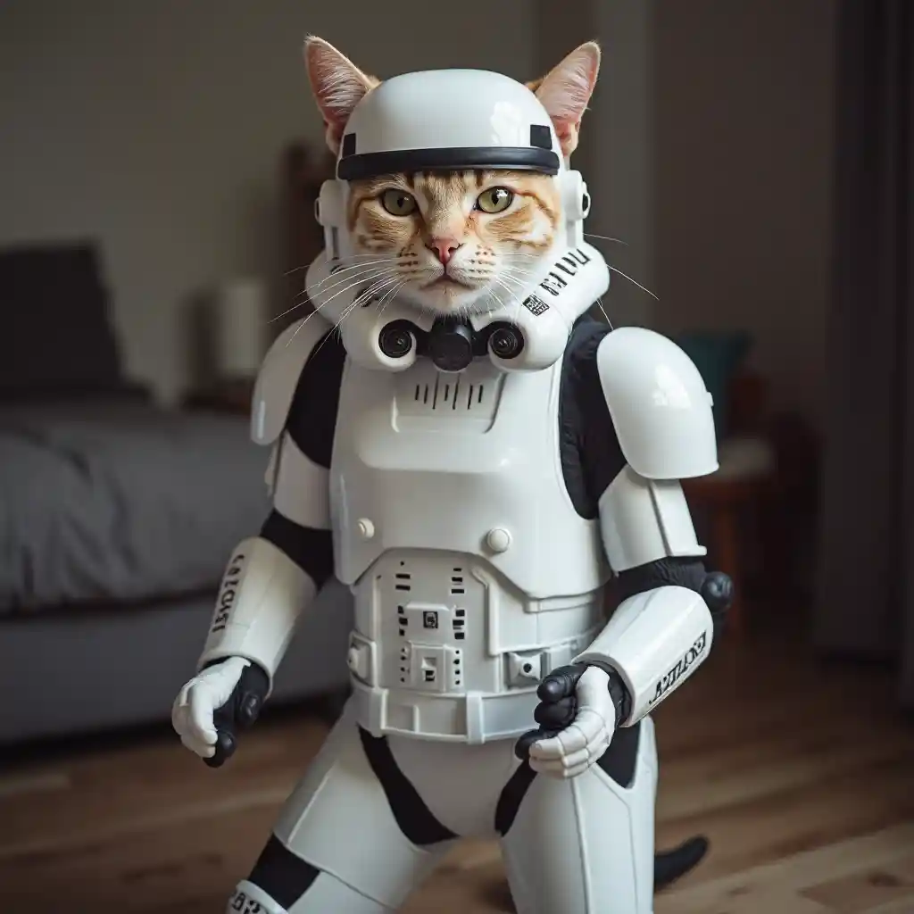 স্টোরমট্রুপার পোশাক পরা বিড়াল