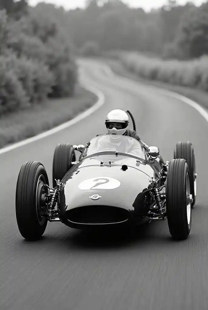 ১৯৫০-এর দশকের একটি রেস কার , কালো সাদা ছবি