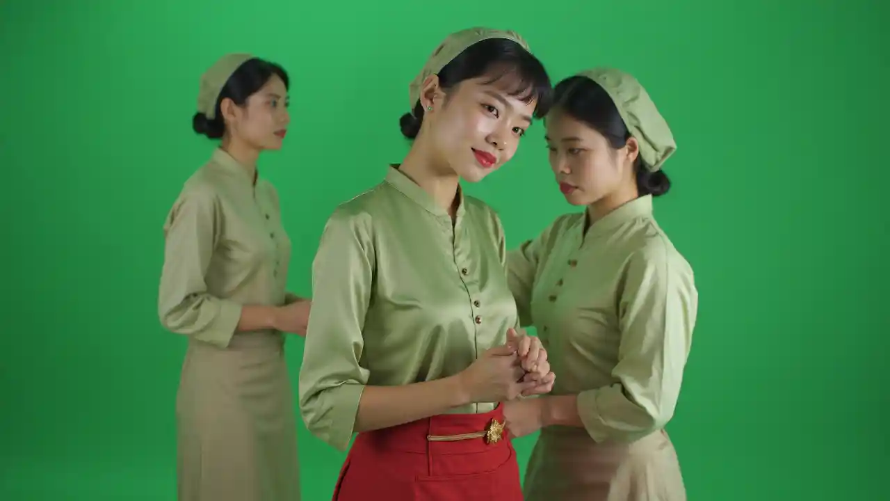 Asiatiske piger med grøn baggrund