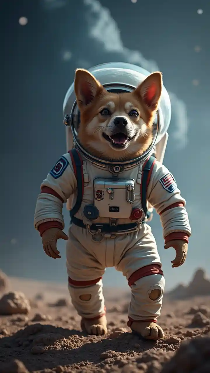 HarrisonAstronaut hund, rejse i rummet, realistisk, HD,