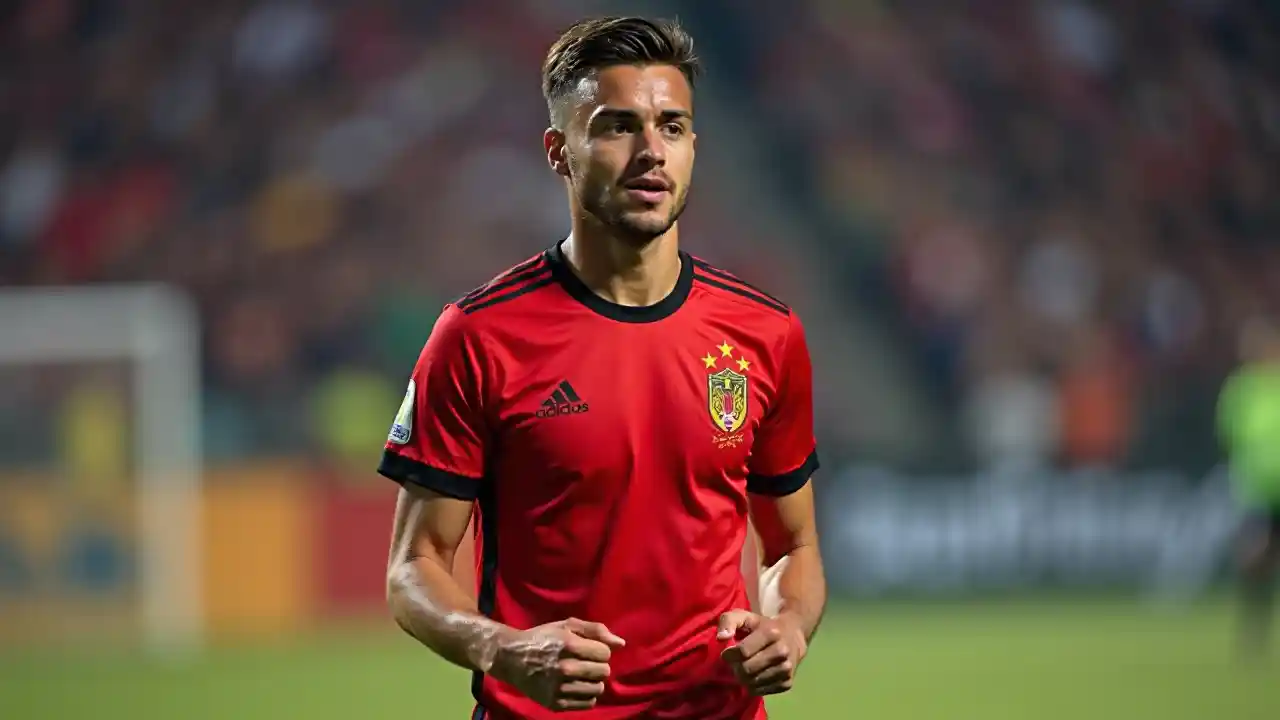 Belgisk mandlig fodboldspiller i rød og sort trøje