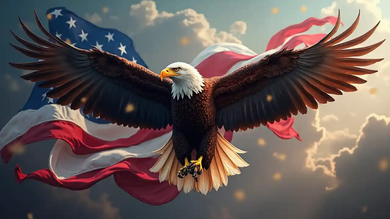 Forestil dig en majestætisk ørn med et amerikansk flag strakt bagved med tredels regel i Banksy stil