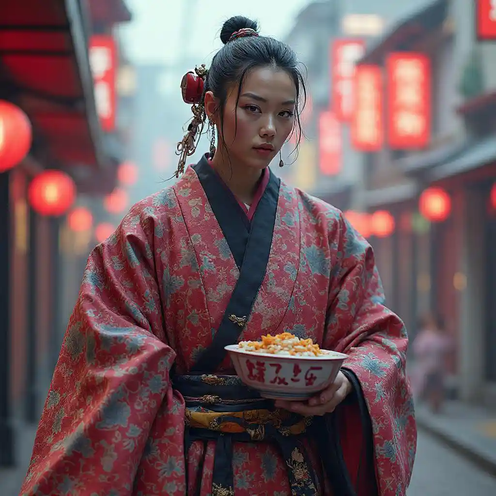 Cyborg Samurai,kimono inspired by Sanuki udon,Shining Ding,vapor wave,The future after 1000,street fashion