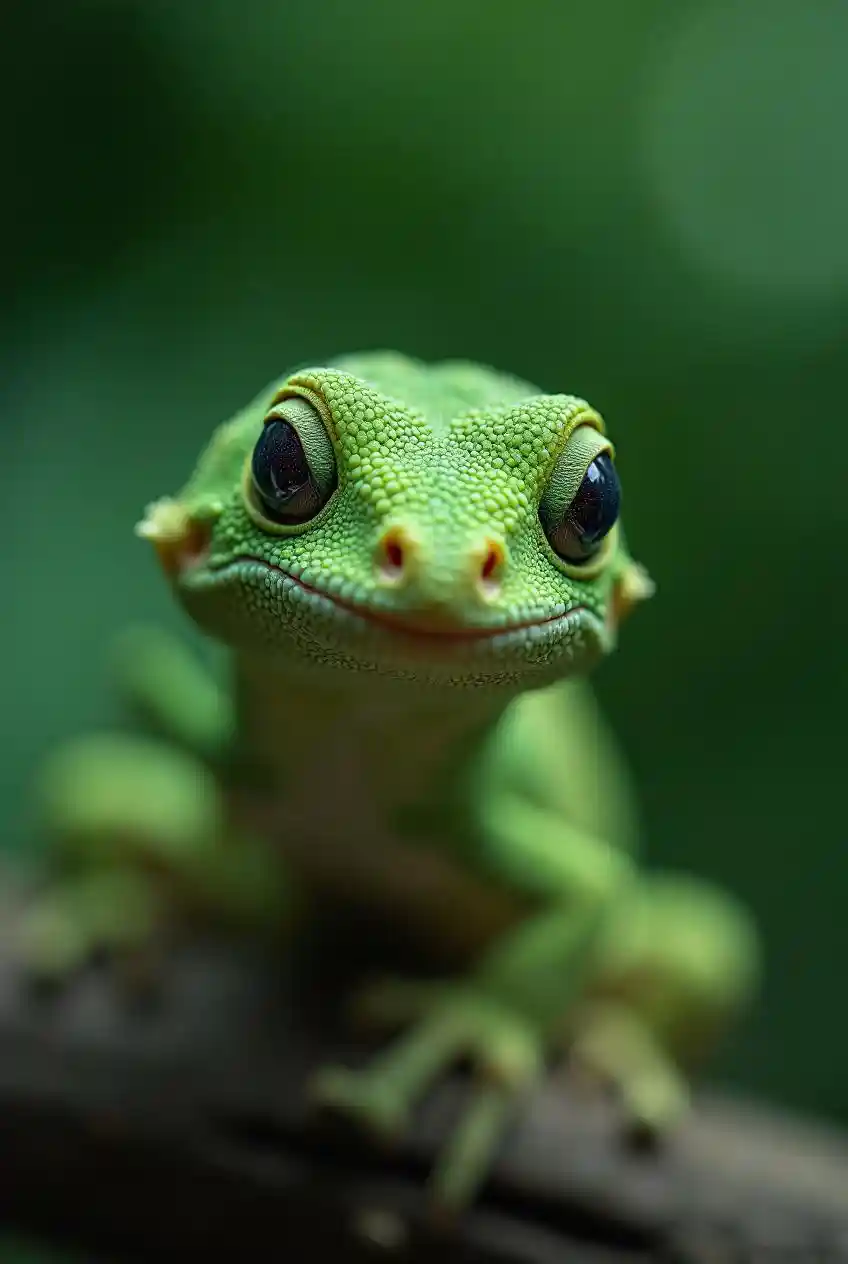 CalebGecko på skærmen, makrofotografering, skarpt fokus, naturlig tekstur, levende grønne toner, høj detaljering, blød baggrund, realistisk belysning