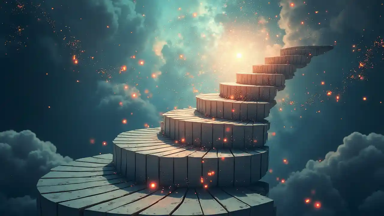 Trappen er lavet af klavertaster, der fører til musikens magiske verden. Musikalske melodier flyver i luften, musikalske magiske vibber overalt, hele verden er i den musikalske hypnose af legende, glade øjeblikke, harmonisk fortsættelse af noterne, melodisk. Hele scenen er i den magiske himmel.
